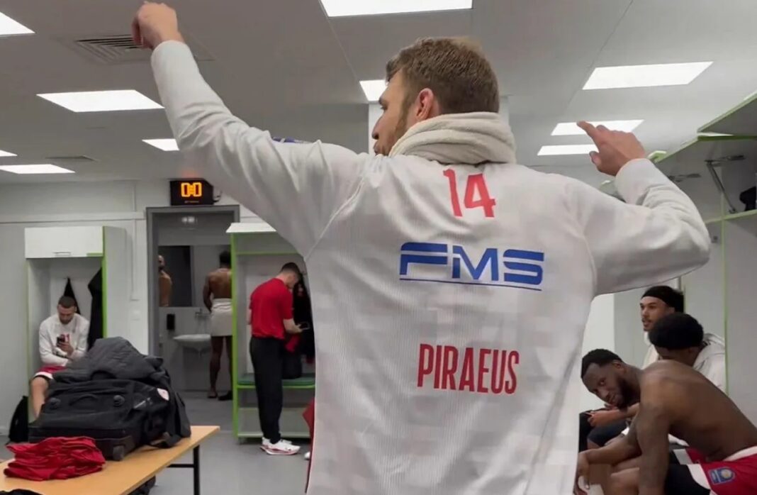 Το κλίμα στα ερυθρόλευκα αποδυτήρια ήταν πανηγυρικό μετά το τέλος του αγώνα, με τον Σάσα Βεζένκοφ να μην χάνει την ευκαιρία να «πειράξει» τον Γιαννούλη Λαρεντζάκη, ο οποίος δέχθηκε να κεράσει σούσι όλοι την ομάδα μετά την προτροπή του συμπαίκτη του.