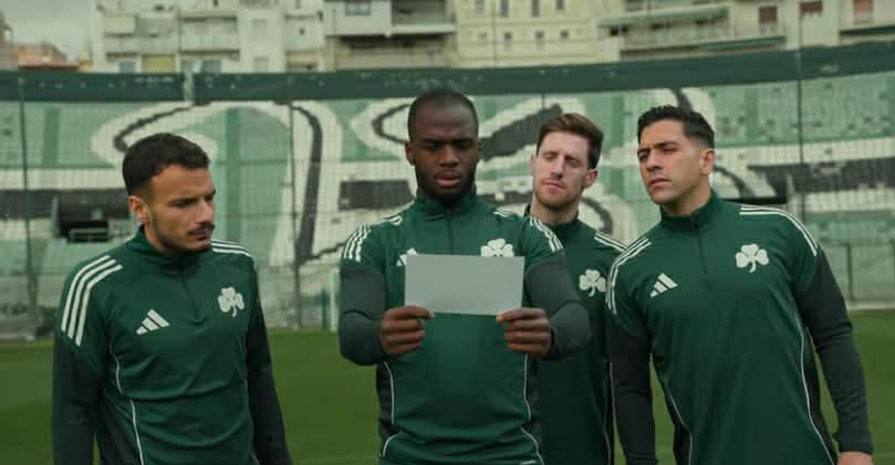 Μάλιστα, στο βίντεο παρουσίασης της νέας φανέλας με τον χορηγό στο κέντρο, ορισμένοι παίκτες της ομάδας, όπως οι Κυριακόπουλος, Μπακασέτας και Τεττέη, ψάχνουν σε στυλ… κυνήγι θησαυρού τη νέα πράσινη φανέλα με το όνομα της «SuperBet» σε πρώτο πλάνο.