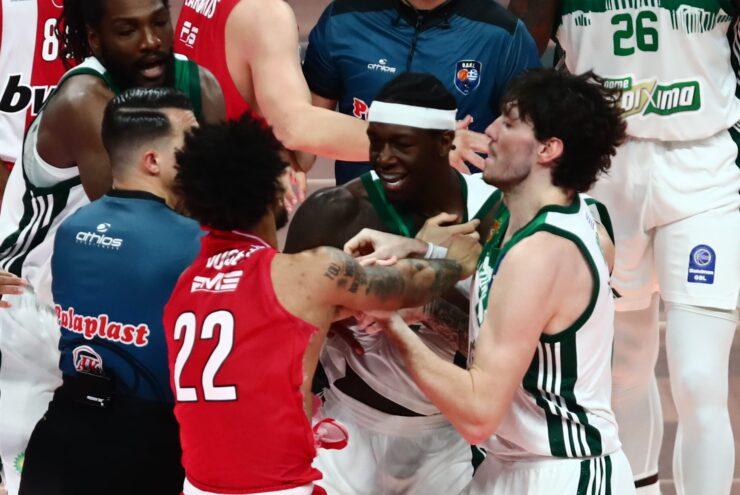 - Επιβάλλεται στον Mathias Lessort, καλαθοσφαιριστή της ΠΑΝΑΘΗΝΑΪΚΟΣ ΑΘΛΗΤΙΚΟΣ ΟΜΙΛΟΣ ΚΑΛΑΘΟΣΦΑΙΡΙΚΗ ΑΝΩΝΥΜΗ ΕΤΑΙΡΕΙΑ (δ.τ. ΚΑΕ ΠΑΝΑΘΗΝΑΙΚΟΣ AKTOR), ήτοι ποινή αποκλεισμού (1) αγωνιστικής ημέρας και χρηματικό πρόστιμο ύψους δέκα χιλιάδων ευρώ (10.000,00) ευρώ, για το πειθαρχικό παράπτωμα της δυσφημιστικής συμπεριφοράς για το άθλημα, κατά διάρκεια του ιδίου ως άνω αγώνα, ήτοι για τέλεση έργω εξύβρισης σε βάρος αθλητή αντίπαλης ομάδας (σκίσιμο φανέλας αντίπαλου αθλητή)».