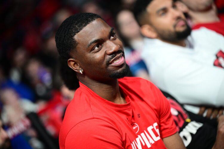 Ο Κίναν Έβανς επέστρεψε χαμογελαστός από τις ΗΠΑ όπου βρισκόταν για θεραπείες και οι συμπαίκτες – προπονητές του στον Ολυμπιακό τον υποδέχθηκαν με θέρμη και μάλιστα εν ώρα μίτινγκ αγώνα.