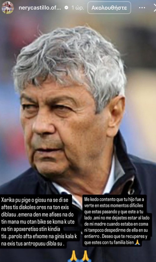 Ο Νέρι Καστίγιο ευχήθηκε περαστικά στον άλλοτε προπονητή του, εκφράζοντας ωστόσο και το παράπονο του από την περίοδο που οι δυο τους συνεργάστηκαν στη Σαχτάρ.