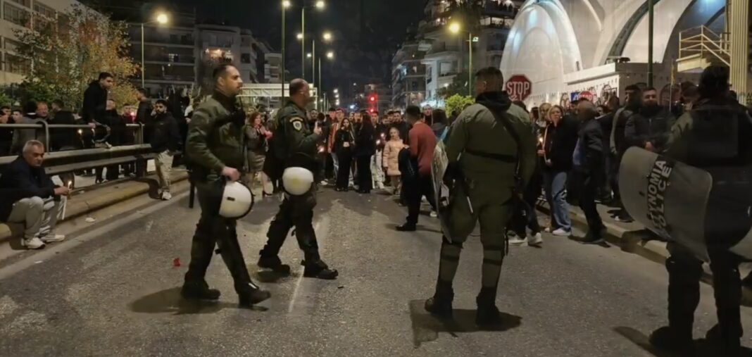 Η έντονη παρουσία των ΜΑΤ παρατηρήθηκε, με ισχυρές αστυνομικές δυνάμεις να βρίσκονται σε επιφυλακή στην περιοχή. Από νωρίς τη βραδιά του Μεγάλου Σαββάτου (11.4.26), αστυνομικοί από διάφορες υπηρεσίες έκαναν ελέγχους σε σακίδια και προσωπικά αντικείμενα κοντά στην οδό Λαγουμιτζή.