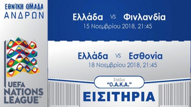 Η ΕΠΟ μέσω ανακοίνωσης ενημέρωσε για τη διάθεση των εισιτηρίων των αγώνων της εθνικής ομάδας με την Φινλανδία (15/11) και την Εσθονία (15/11) στο ΟΑΚΑ για το Nations League.