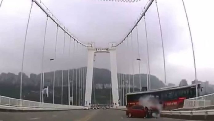 Το δυστύχημα έγινε σε γέφυρα του ποταμού Γιανγκτσέ στη νοτιοδυτική Κίνα στις 28 Οκτωβρίου και όπως φαίνεται στο βίντεο που δημοσίευσε το δίκτυο People’s Daily, η γυναίκα χτυπά με το κινητό της τηλέφωνο τον οδηγό στο πρόσωπο.