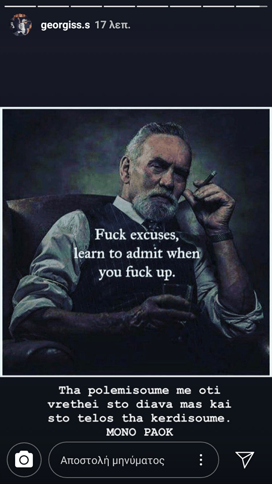 Αργά το βράδυ του Σαββάτου, ο γιος του Ιβάν Σαββίδη και μέλος του Δ.Σ της ΠΑΕ ΠΑΟΚ, έκανε νέα ανάρτηση, στην οποία ανέφερε ότι ο Δικέφαλος θα πολεμήσει όποιον βρεθεί στο διάβα του. Συγκεκριμένα, έγραψε: «Θα πολεμήσουμε με ότι βρεθεί στο διάβα μας και στο τέλος θα κερδίσουμε. Μόνο ΠΑΟΚ!».