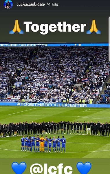 Το «παρών» στο γήπεδο έδωσε και ο πρώην ποδοσφαιριστής του Ολυμπιακού, Καμπιάσο, ο οποίος είχε αγωνιστεί στο παρελθόν στη Λέστερ, απ’ όπου τον είχαν αποκτήσει και οι «ερυθρόλευκοι».