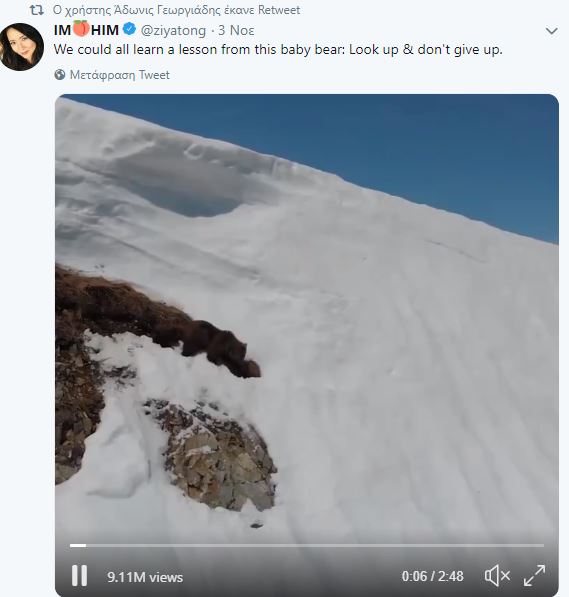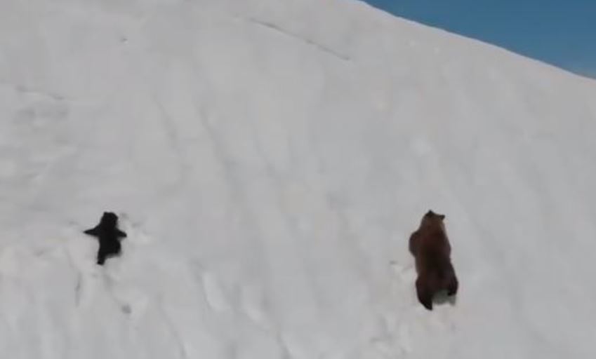 Eνα βίντεο που καταγράφει την περιπέτεια μιας μικρής αρκούδας που κάνει τα πρώτα βήματα δίπλα στη μητέρα της και προσπαθεί να αναρριχηθεί σε μια χιονισμένη πλαγιά, κάνει το γύρο του διαδικτύου.