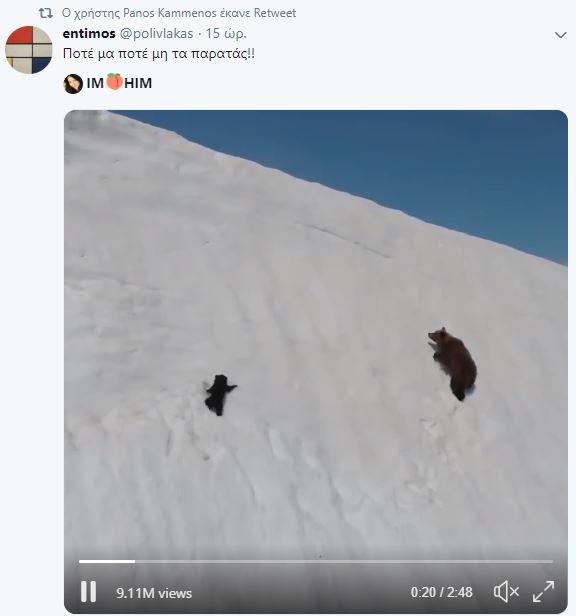 Αυτό το βίντεο «ένωσε» τον υπουργό Άμυνας Πάνος Καμμένο και τον αντιπρόεδρο της Νέας Δημοκρατίας, Άδωνι Γεωργιάδη, που μπορεί να διαφωνούν σε πάρα πολλά όσον αφορά το πεδίο της πολιτικής, αλλά το βίντεο τους συγκίνησε τόσο που αμφότεροι έκαναν retweet.
