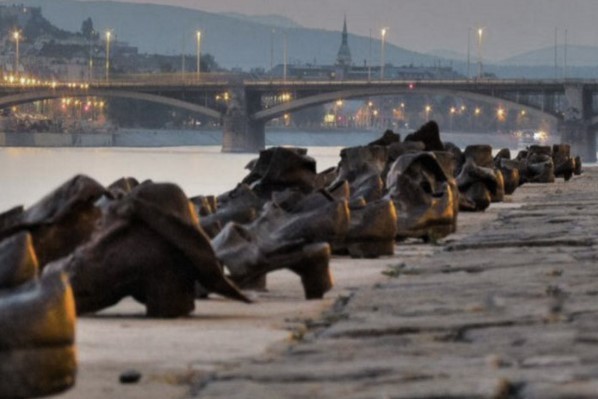Δίπλα στη Γέφυρα των Αλυσίδων, θα δείτε το Μνημείο για τους 550.000 Ούγγρους Εβραίους που έχασαν τη ζωή τους το 1944 – 45. Χιλιάδες από αυτούς πυροβολήθηκαν δίπλα στην όχθη από συμπατριώτες τους, συνεργάτες των Ναζί. Πριν τους εκτελέσουν, τους ανάγκαζαν να βγάλουν το πιο πολύτιμο πράγμα που είχαν επάνω τους. Τα παπούτσια τους.