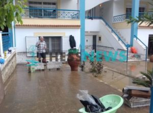 Οι περισσότεροι ιδιοκτήτες, τα σπίτια των οποίων βούλιαξαν στα νερά, έχουν βάλει αντλίες και τα τραβούν έξω για να χυθούν έξω στο δρόμο. Παρότι σήμερα έχει ηλιοφάνεια και ενώ στα ψηλότερα σημεία δεν είναι εμφανές ότι ξέσπασε εδώ μια τόσο σφοδρή καταιγίδα, στα δρομάκια σχηματίζονται λιμνούλες από τα απόνερα.