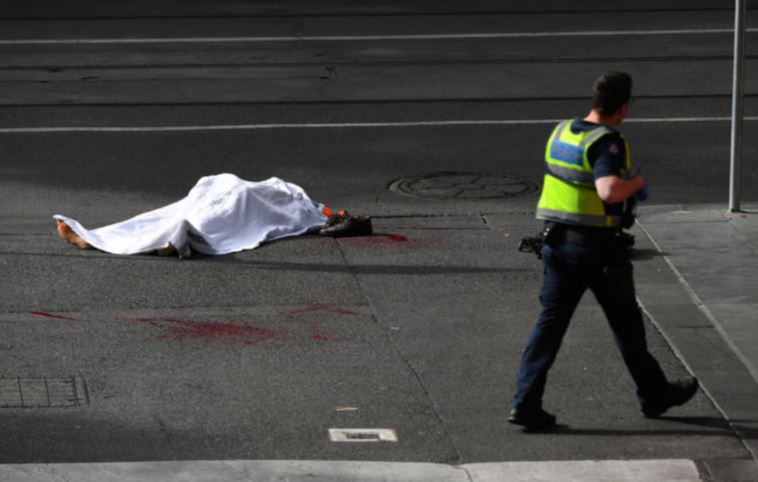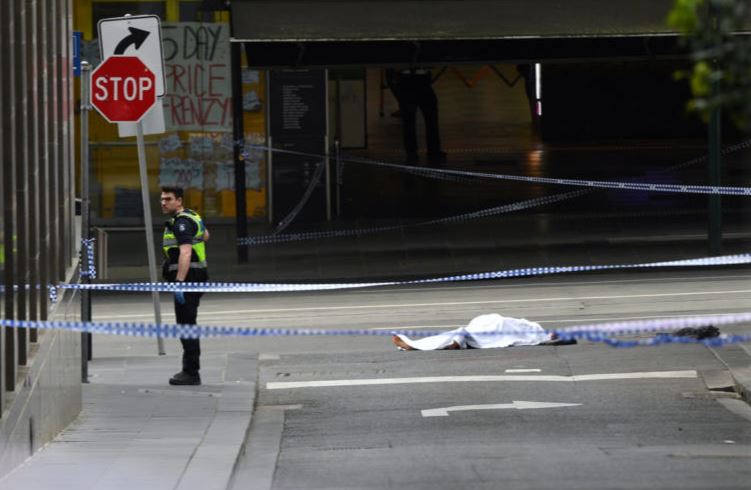Η αστυνομία της Βικτώρια ανακοίνωσε ότι από την επίθεση στην οδό Bourke ένας άνδρας έχει χάσει τη ζωή του. Ήδη κάνουν το γύρο του κόσμου μέσω των πρακτορείων κάνουν οι φωτογραφίες που δείχνουν το θύμα στο έδαφος, καλυμμένο με σεντόνι.