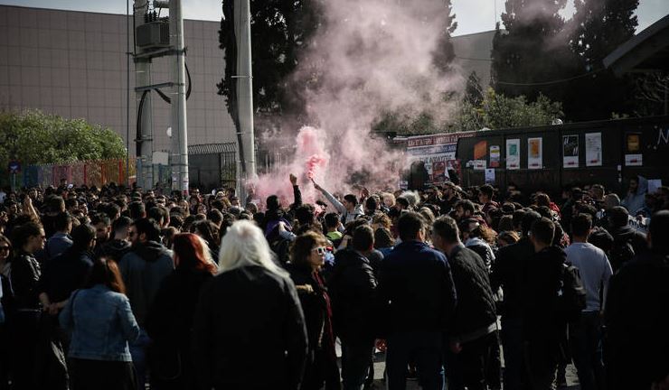 Νωρίτερα, μαθητές και φοιτητές είχαν συγκεντρωθεί έξω από την είσοδο, κρατώντας πανό και φωνάζοντας συνθήματα εναντίον των μεταρρυθμίσεων που προωθούνται στην Παιδεία.
