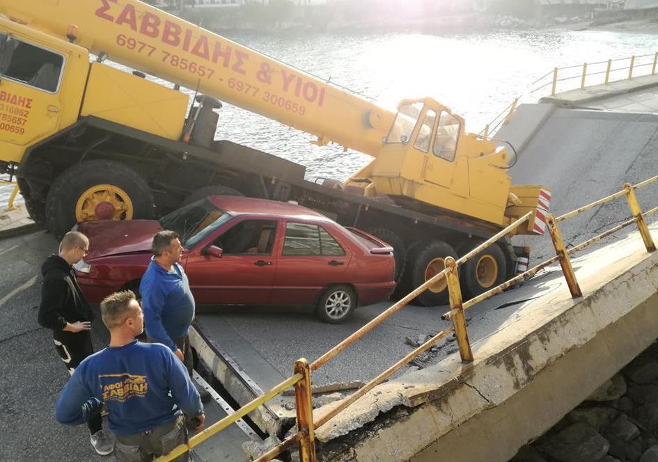 Σύμφωνα με την ιστοσελίδα kavala-portal.gr, η γέφυρα υποχώρησε την ώρα που περνούσε ένα γερανοφόρο όχημα. Μαζί με τον γερανό, «βούλιαξε» και ένα ΙΧ επιβατικό αυτοκίνητο που βρισκόταν ακριβώς δίπλα του. Tο οχήματα υπέστησαν ζημιές, όμως ευτυχώς δεν τραυματίστηκε κανείς.