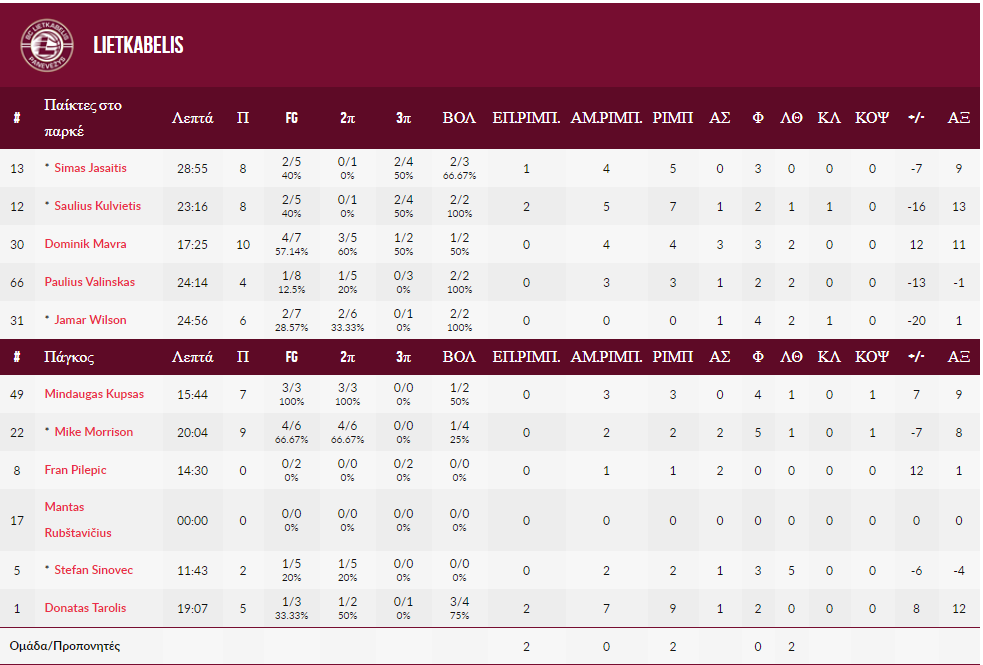 Η Ένωση έχοντας εκτός λόγω τραυματισμών τους Καββαδά, Σάκοτα και Μέις τα βρήκε σκούρα απέναντι στη λιθουανική ομάδα, ωστόσο για καλή της τύχη είχε σε μεγάλη βραδιά τον Βινς Χάντερ! Ο Αμερικάνος σέντερ οδήγησε τον «Δικέφαλο» στη νίκη σημειώνοντας 28 πόντους με 8/11 δίποντα και 12/16 ελεύθερες βολές, ενώ άγγιξε το νταμπλ-νταμπλ καθώς μάζεψε 9 ριμπάουντ!