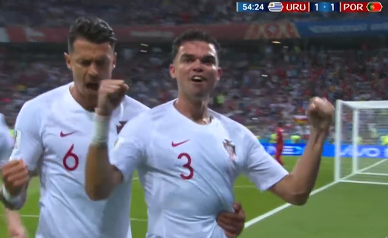 Ο Γκερέιρο εκτέλεσε το κόρνερ που είχαν κερδίσει οι Ίβηρες και ο Πέπε με κεφαλιά έστειλε την μπάλα στα δίχτυα του Μουσλέρα. Αυτό είναι το πρώτο γκολ που δέχεται η Ουρουγουάη στο Παγκόσμιο Κύπελλο της Ρωσίας.