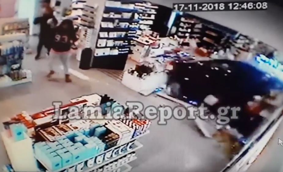 Καρέ-καρέ η «εισβολή» από τις κάμερες του φαρμακείου στη Λαμία • Τραυματίστηκε μια 62χρονη γυναίκα