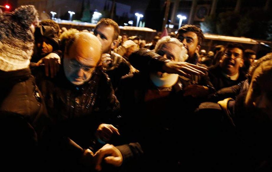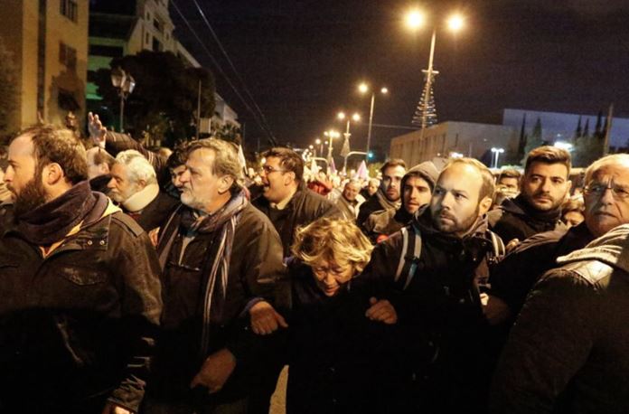 Αρχικά οι διαδηλωτές φώναξαν συνθήματα κατά των μελών και των στελεχών του ΣΥΡΙΖΑ, ενώ στη συνέχεια η ένταση κλιμακώθηκε, καθώς εκσφενδονίστηκαν μπουκάλια και άλλα αντικείμενα και ακολούθησαν σπρωξίματα και διαγκωνισμοί.