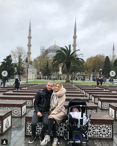Μάλιστα, ο αριστερός οπισθοφύλακας της Ένωσης φωτογραφήθηκε μαζί με τη σύντροφό του και το παιδί τους στην Αγία Σοφία, κάτι που κοινοποίησε στα social media.