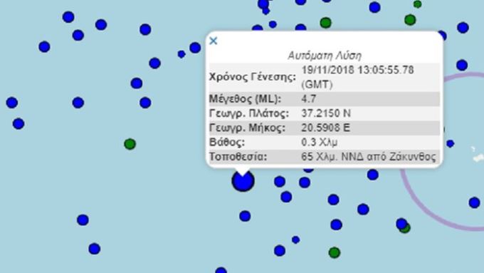 Ισχυρή σεισμική δόνηση 4,7 βαθμών της κλίμακας Ρίχτερ σημειώθηκε στις 15.05 με επίκεντρο την περιοχή της Ζακύνθου.