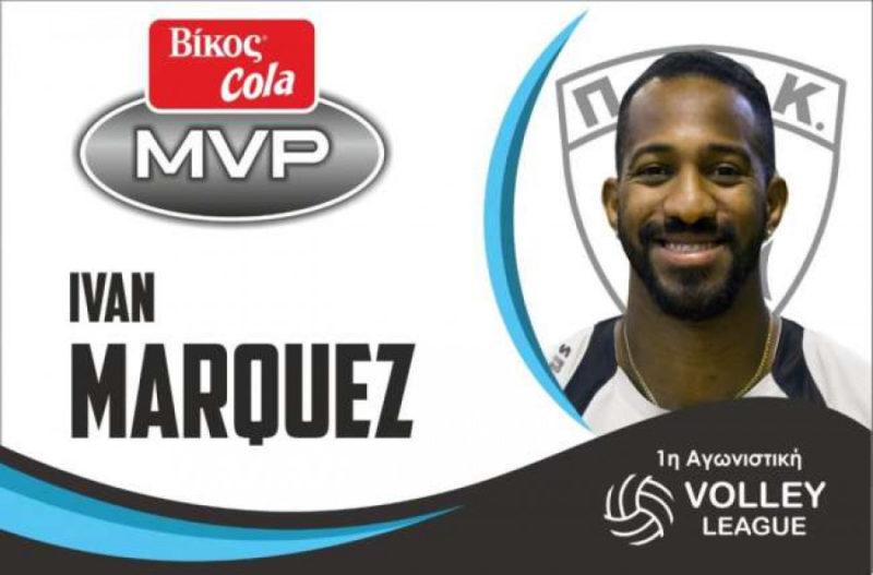 Μία σημαντική διάκριση έλαβε ο κεντρικός και διαγώνιος του ΠΑΟΚ, Ιβάν Μάρκες. Ο Βενεζουελάνος πήρε τον τίτλο του MVP για την 1η αγωνιστική της Volley League η οποία διεξήχθη την Τετάρτη 21 Νοεμβρίου.