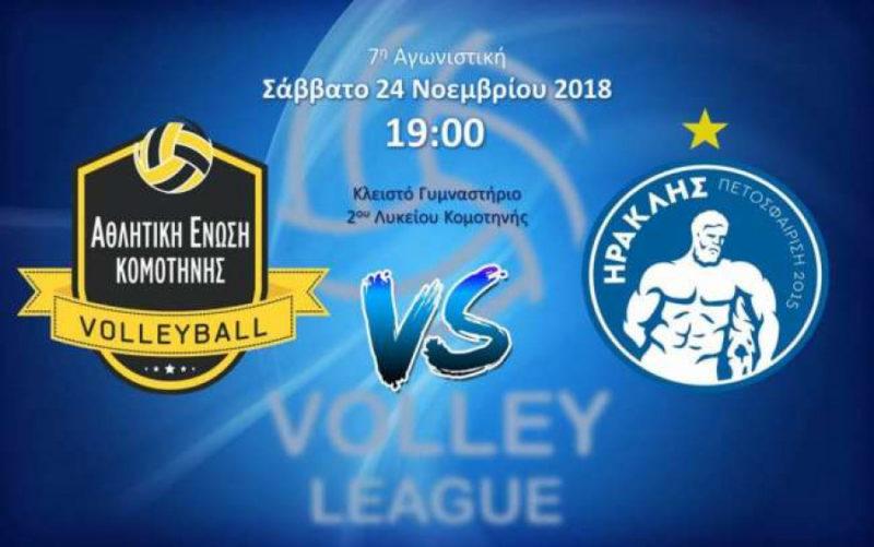 Η Κομοτηνή και ο Ηρακλής αναμετρώνται σήμερα στο πλαίσιο της 7ης αγωνιστικής της Volley League στο Κλειστό Γυμναστήριο του 2ου Λυκείου της Κομοτηνής.