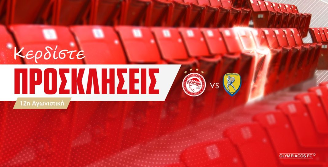 Ο Ολυμπιακός τη Δευτέρα (3/12) υποδέχεται τον Παναιτωλικό στο πλαίσιο της 12ης αγωνιστικής της Σούπερ Λιγκ και η ερυθρόλευκη ΠΑΕ δίνει την ευκαιρία σε φίλους της ομάδας να κερδίσουν προσκλήσεις και να δουν από κοντά την αναμέτρηση με την ομάδα του Αγρινίου.
