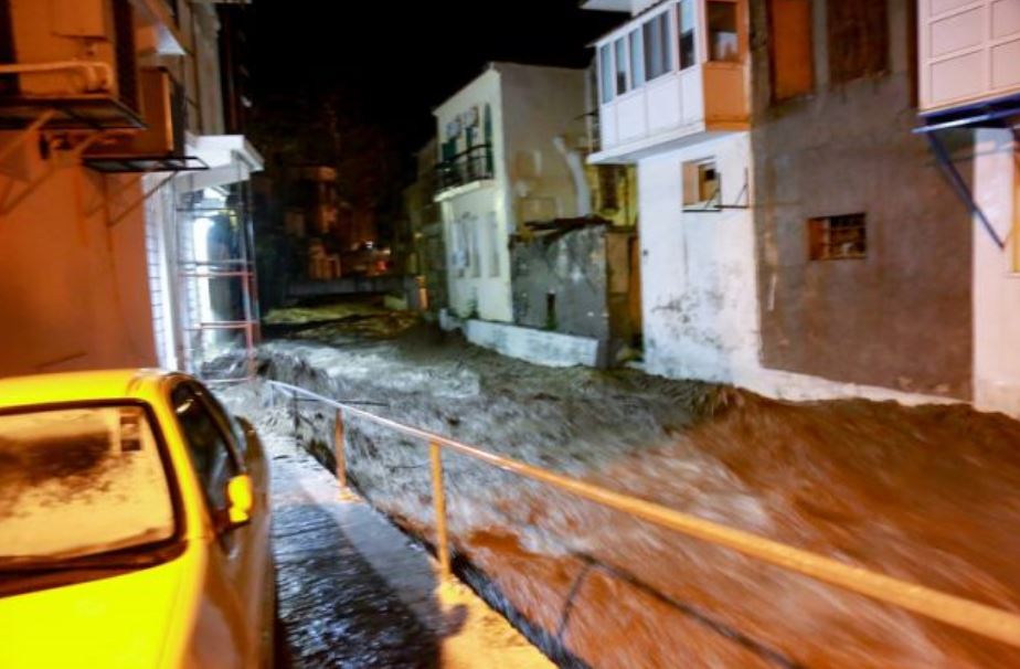 Μέσα στην πόλη της Μυτιλήνης πολλοί δρόμοι έχουν μετατραπεί σε λίμνες.