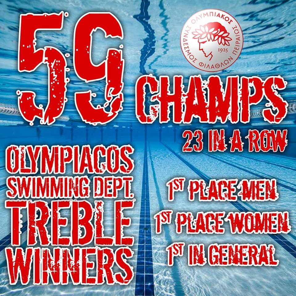 «Η ΠΑΕ Ολυμπιακός συγχαίρει το τμήμα κολύμβησης του Συλλόγου μας, για την κατάκτηση του 59ου πρωταθλήματος και 23ου συνεχόμενου!