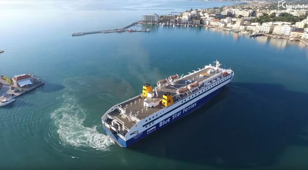 Tο πλοίο «Διαγόρας» μπαίνει στο λιμάνι της Χίου και ο καπετάνιος ξεκινά τη συνηθισμένη μανούβρα προσέγγισης.