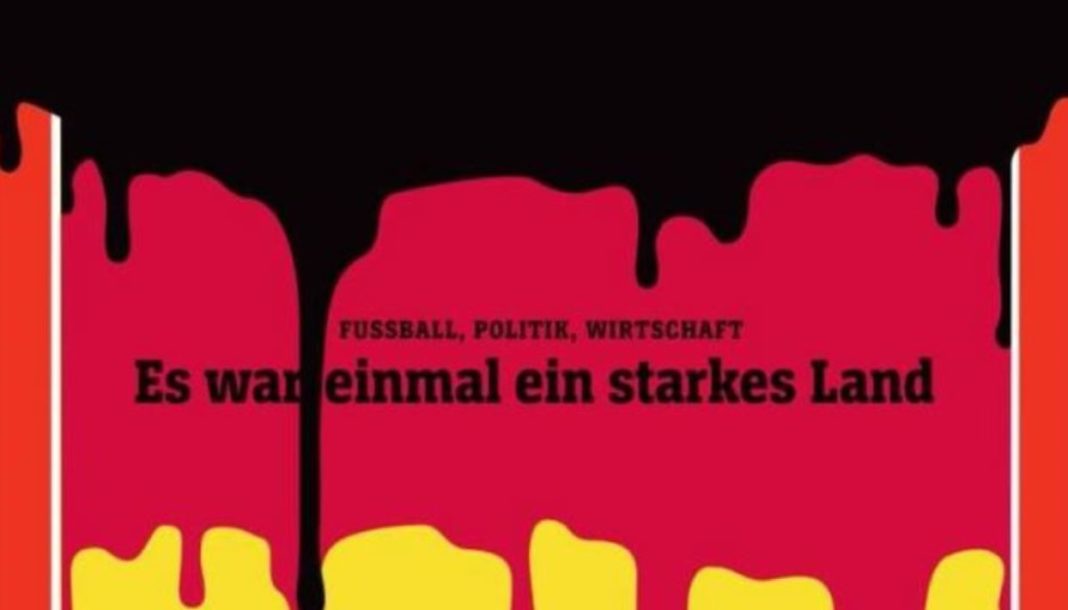 Στο πρωτοσέλιδο του περιοδικού φιγουράρουν τα χρώματα της σημαίας της Γερμανίας τα οποία, όμως, φαίνεται να «λιώνουν» κάτω από το βάρος της κρίσης στη χώρα.