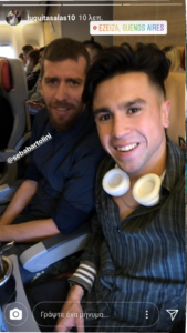 Ο νεαρός ανέβασε στα μέσα κοινωνικής δικτύωσης μία φωτογραφία του από το αεροπλάνο, όπου συνοδεύεται από τον παλιό στόπερ των Αρκάδων, Σεμπάστιαν Μπαρτολίνι.