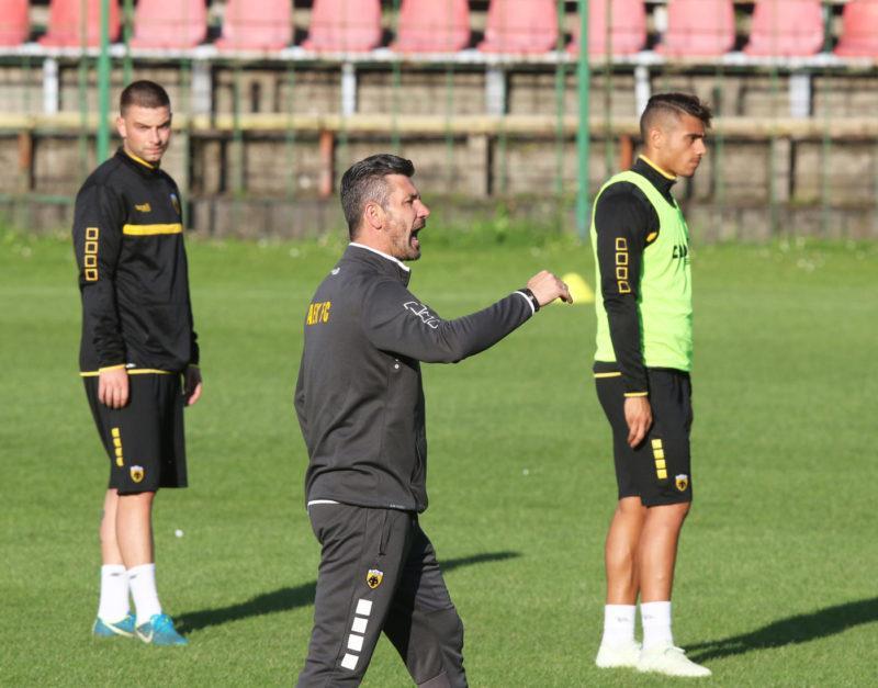 Ο Έλληνας τεχνικός ζήταγε απ’ τους παίκτες του συνεχώς να κάνουν καλές δυνατές πάσες και να κουβαλάνε σε ένα σημείο της άσκησης σωστά την μπάλα.