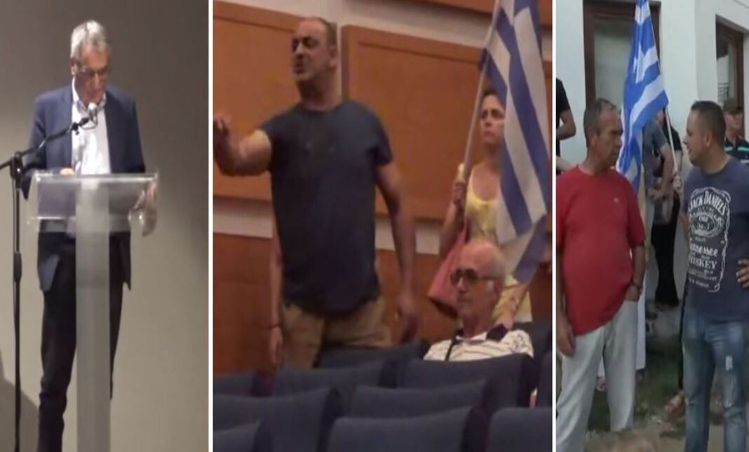 Ο γενικός γραμματέας του υπουργείου Εσωτερικών βρέθηκε στο Κιλκίς για να μιλήσει για τις αλλαγές στην τοπική αυτοδιοίκηση, αλλά συνάντησε τις οργισμένες αντιδράσεις κατοίκων της πόλης, που τον περίμεναν με ελληνικές σημαίες στα χέρια.