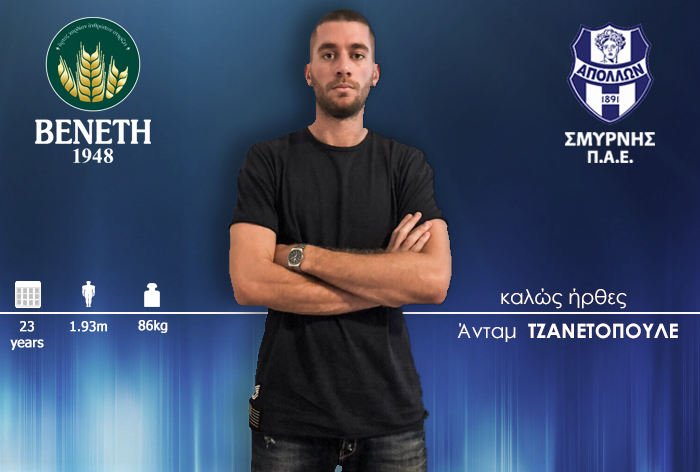 Η ΠΑΕ Απόλλων Σμύρνης ανακοινώνει την απόκτηση του ποδοσφαιριστή Άνταμ Τζανετόπουλου. Γεννημένος στις 10 Φεβρουαρίου 1995 αγωνίζεται ως κεντρικός αμυντικός. Ο διεθνής ποδοσφαιριστής έχει αγωνιστεί σε Ηρακλή και ΑΕΚ, από την οποία έμεινε ελεύθερος. Υπέγραψε τριετές συμβόλαιο συνεργασίας.