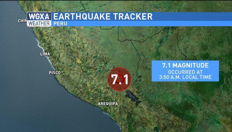 Πολύ ισχυρός σεισμός μεγέθους 7,1 Ρίχτερ σημειώθηκε στο Περού. Το αμερικανικό γεωλογικό ινστιτούτο ανακοίνωσε πως ο σεισμός έχει επίκεντρο 40 μίλια βόρεια της πόλης Χουλιάκα, στο νότιο τμήμα της χώρας, με εστιακό βάθος 150 μίλια.