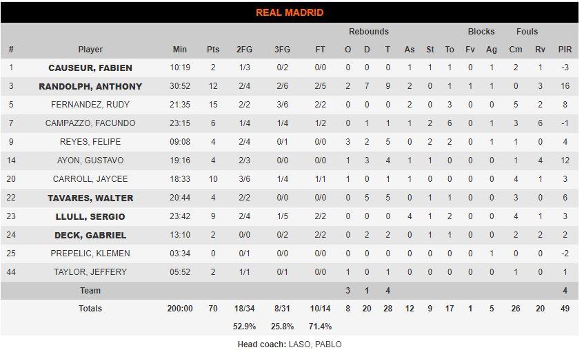 Η Ρεάλ Μαδρίτης, παρότι ο Ρούντι έκανε ότι μπορούσε, δεν κατάφερε να επιστρέψει στο ματς και ηττήθηκε με 77-70.