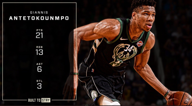 Ο «Greek Freak» πέτυχε το 45ο double double της σεζόν, με 21 πόντους, 13 ριμπάουντ, 6 ασίστ και 3 κλεψίματα.