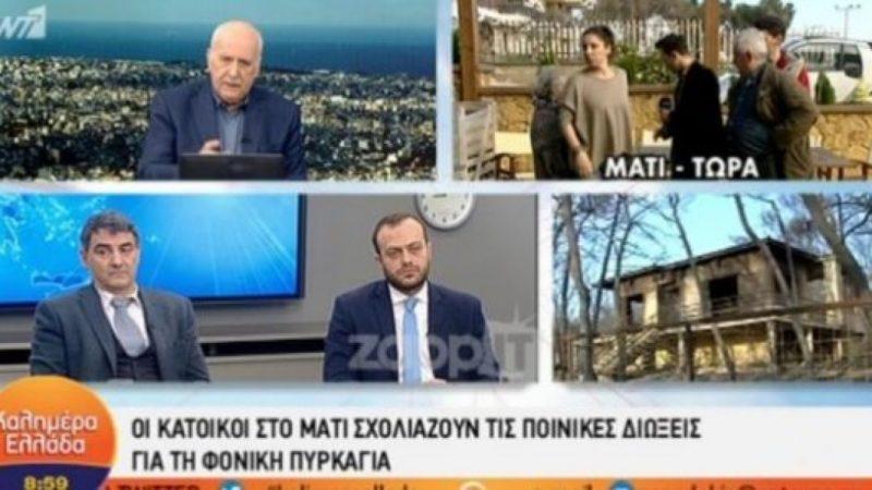 Ακούγοντας σχόλιο του δημοσιογράφου Δημήτρη Χατζηνικόλα, ο οποίος ανέφερε την άναρχη δόμηση ως την κύρια αιτία για τον θάνατο των ανθρώπων στη φονική πυρκαγιά, η κάτοικος της ρημαγμένης περιοχής έγινε έξαλλη: