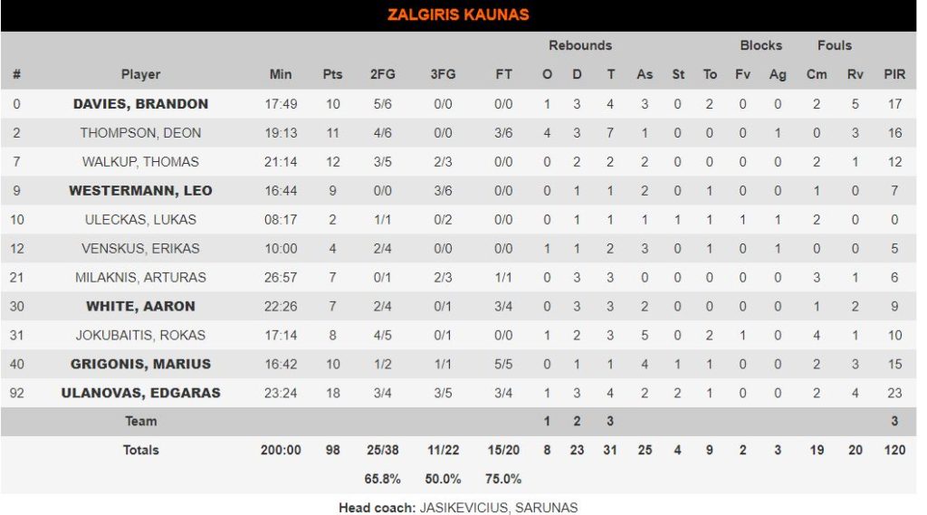 Εύκολο βράδυ είχε η Ζαλγκίρις Κάουνας κόντρα στην Γκραν Κανάρια, καθώς επικράτησε με 98-64 στο πλαίσιο της 25ης αγωνιστικής της Ευρωλίγκας. Οι Λιθουανοί ήταν εξαιρετικοί, από το πρώτο δεκάλεπτο πήραν διψήφια διαφορά και την κράτησαν μέχρι το τέλος.