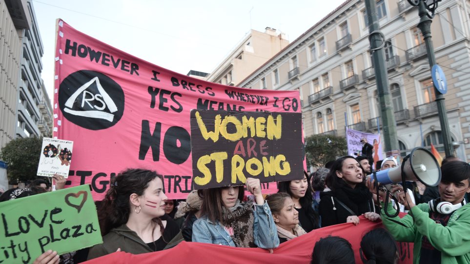 Οι διαδηλωτές και οι διαδηλώτριες συγκεντρώθηκαν στα Προπύλαια, με πανό και φωνάζοντας συνθήματα, μεταξύ άλλων, κατά των έμφυλων διακρίσεων και κατά των γυναικοκτονιών, στην πορεία τους μέχρι το Σύνταγμα.