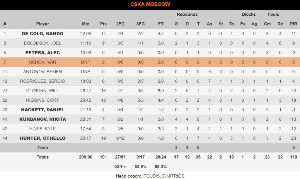Οι γηπεδούχοι συνέχισαν να έχουν τον έλεγχο και κατάφεραν να πάρουν και διψήφια διαφορά (76-66). Στην τελευταία περίοδο δεν άλλαξε κάτι και η ΤΣΣΚΑ πήρε τη νίκη με 101-95.