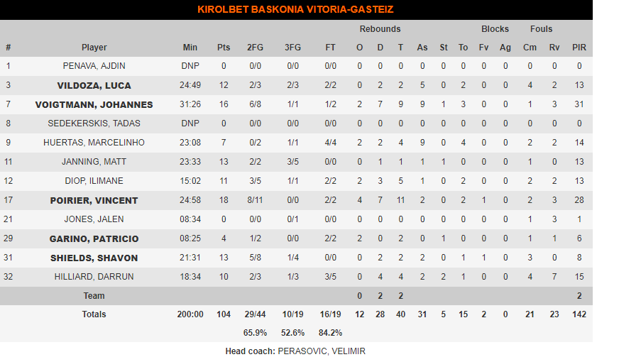 Κορυφαίοι για τους νικητές οι Βινσέντ Πουαριέρ με 18 πόντους και Τζόανς Βόιτμαν με 16, έχοντας άξιους συμπαραστάτες τους Μάτ Τζάνιγκ, Σαβόν Σιλντς και Ιλμαν με 13.