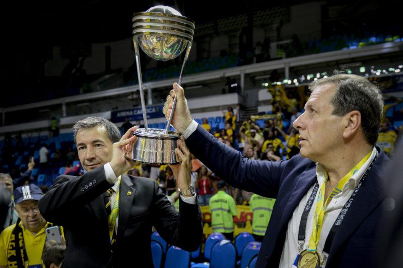 Οι Μάκης Αγγελόπουλος και Χάρης Κουτάς ΤΩΡΑ στο ΟΑΚΑ, με τα 3 τρόπαια των 365 ημερών θριάμβων της “Βασίλισσας”. #AEKBC ??? pic.twitter.com/jk6aAknLjN