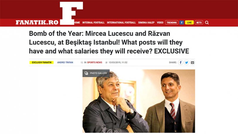 Συγκεκριμένα η ιστοσελίδα «fanatik.ro» αναφέρει: «Το όνειρο της οικογένειας Λουτσέσκου, είναι έτοιμο να πραγματοποιηθεί αυτό το καλοκαίρι. Ο Ραζβάν και ο Μιρτσέα Λουτσέσκου, θα μπορέσουν επιτέλους να δουλέψουν μαζί σε ένα ποδοσφαιρικό κλαμπ. Σύμφωνα με πληροφορίες της Fanatik είναι κοντά στην Μπεσίκτας. Οι διαπραγματεύσεις είναι αρκετά προχωρημένες, με τον πρόεδρο, Φικρέτ Ορμάν να μπαίνει σε προσωπικές συζητήσεις μαζί τους».