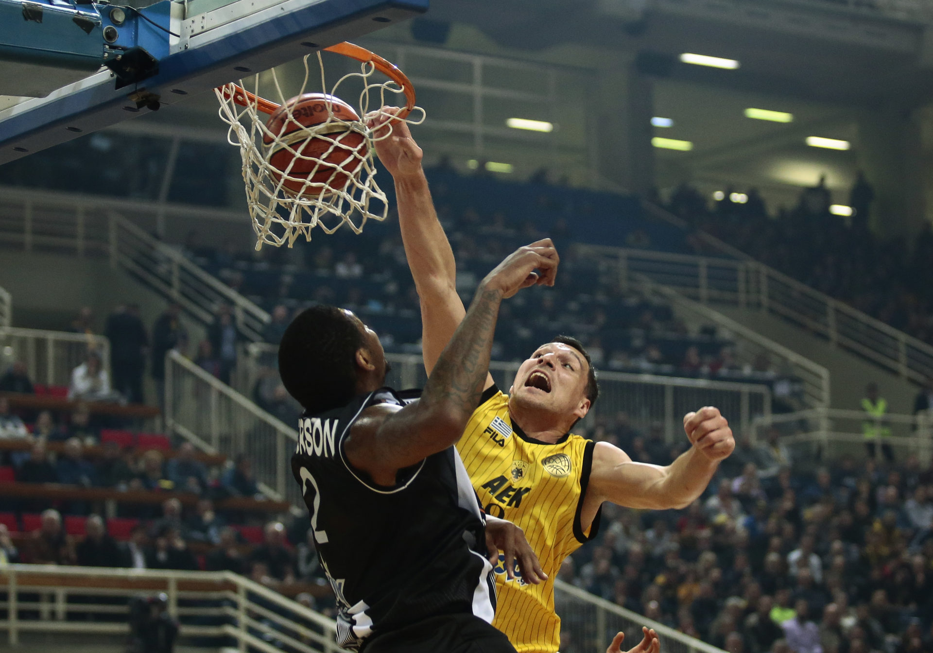 Στην αρχή του παιχνιδιού, ο Λιθουανός έκοψε προς τη ρακέτα του ΠΑΟΚ και με τον Θίοντορ να του κάνει μια ωραία ασίστ, ο Ματσιούλις έκανε ένα πόστερ κάρφωμα.