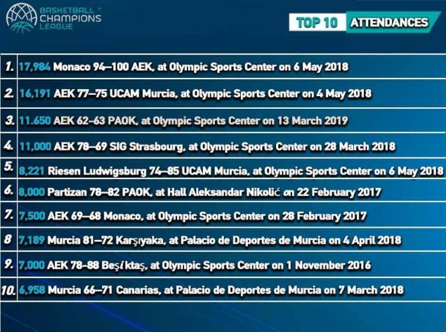 Ο κόσμος της Ένωσης, μπορεί να μην γεμίζει το ΟΑΚΑ στο ελληνικό πρωτάθλημα, αλλά στο BCL δίνει δυναμικό παρών. Χαρακτηριστικό είναι ότι η ΑΕΚ κατέχει τις 6 από τις 10 θέσεις στη λίστα με τα περισσότερα κομμένα εισιτήρια στη διοργάνωση.