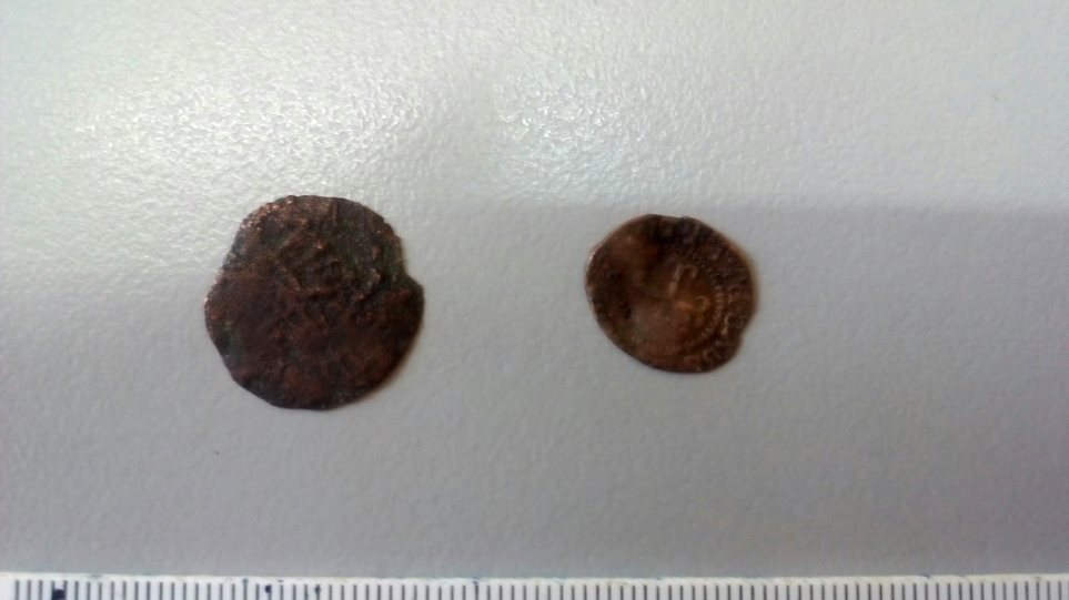 Κατά την διάρκεια της έρευνας, βρέθηκαν στην κατοικία του νεαρού δυο νομίσματα, τα οποία εκτιμάται ότι υπάγονται χρονολογικά στην Βυζαντινή περίοδο και εμπίπτουν στις προστατευτικές διατάξεις του νόμου. Έτσι, κατασχέθηκαν και θα παραδοθούν στην αρμόδια Εφορεία Αρχαιοτήτων, έτσι ώστε να αξιολογηθούν και να εκτιμηθεί η αξίας τους.
