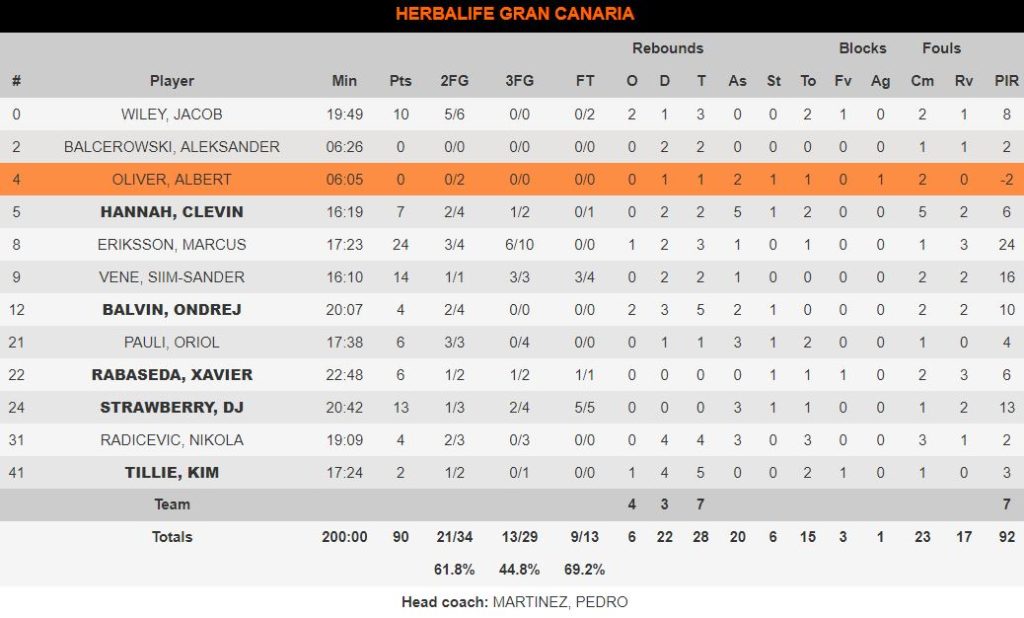 Βαριά ήττα υπέστη ο Ολυμπιακός στην Ισπανία, καθώς ηττήθηκε από την πολύ εύστοχη Γκραν Κανάρια με 90-67 στο πλαίσιο της 28ης αγωνιστικής της Ευρωλίγκας. Οι ερυθρόλευκοι είχαν αρκετά προβλήματα στην περιφέρεια (έλειπαν Σπανούλης – Στρέλνιεκς) και αυτό φάνηκε από το πολύ κακό ποσοστό στα τρίποντα (3/14, 21,4%). Αντίθετα, η Γκραν Κανάρια ήταν ιδιαίτερα εύστοχη και με τέτοια ποσοστά δύσκολα μπορούσε να ηττηθεί