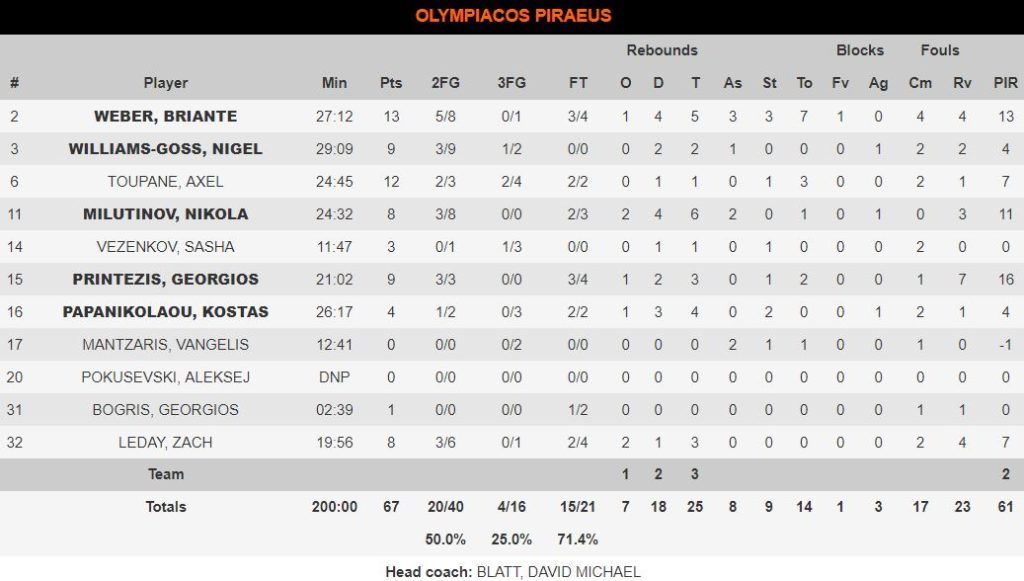 Η ομάδα του Πειραιά ναι μεν είχε τα παραπάνω προβλήματα, αλλά πάνω που φάνηκε ότι βγαίνει από την κρίση, ήρθε ένα ζόρικο, πολύωρο ταξίδι και ένα υψηλής κρισιμότητας ματς μέσα σε 48 ώρες για να τον φέρει πλέον σε πολύ δύσκολη θέση ακόμα και για την οχτάδα. Οι ερυθρόλευκοι πλέον θα πρέπει να κάνουν το 2/2 στα τελευταία ματς της κανονικής διάρκειας, για να εξασφαλίσουν την παρουσία τους στην επόμενη φάση.