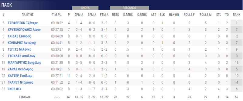 Στη συνέχεια, οι γηπεδούχοι ανέβασαν την απόδοσή τους. Ο ΠΑΟΚ με επιθετικό πλουραλισμό κράτησε ψηλά την επίθεσή του και είδαμε την πιο παραγωγική περίοδο, με 41 πόντους συγκομιδή (31-40).